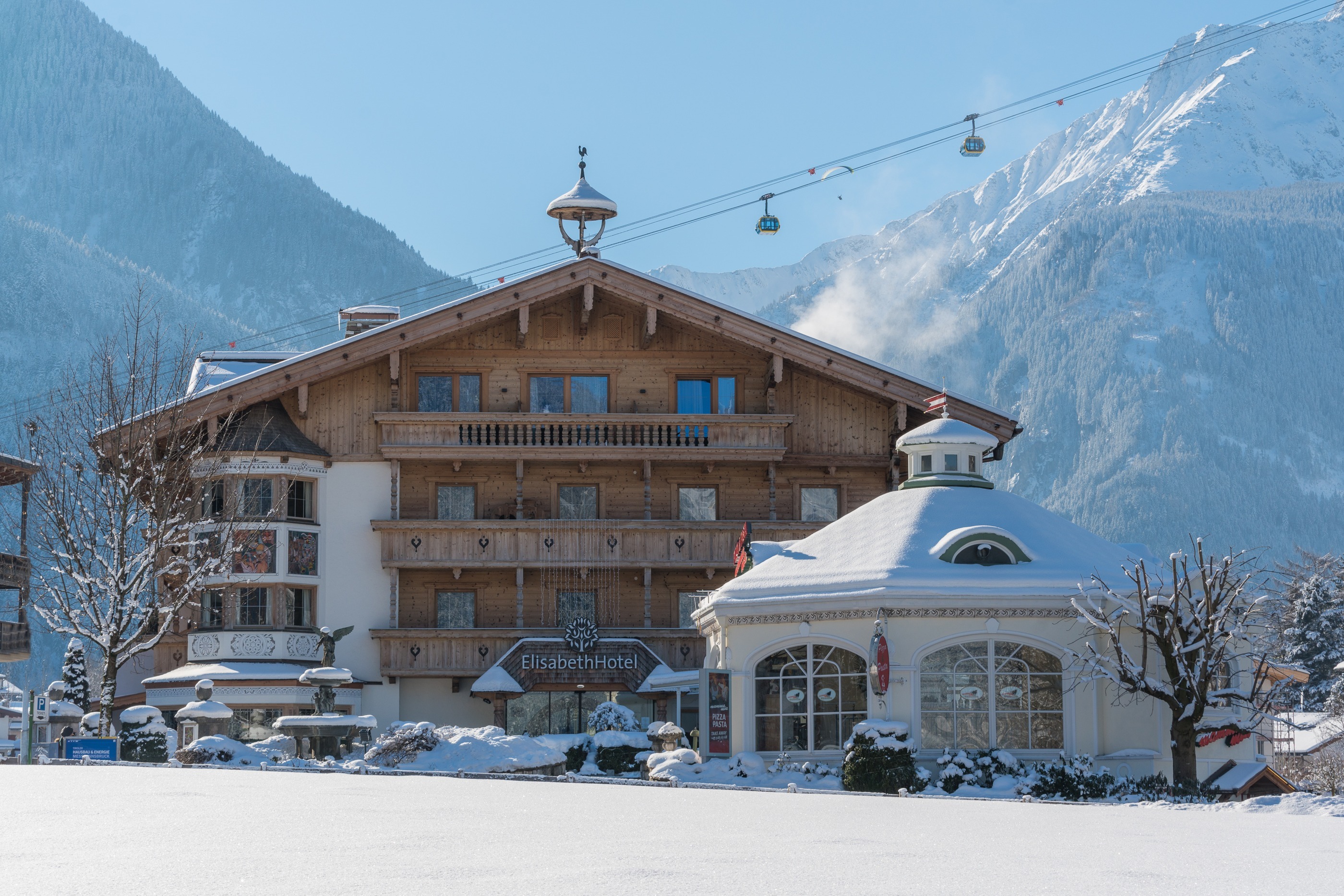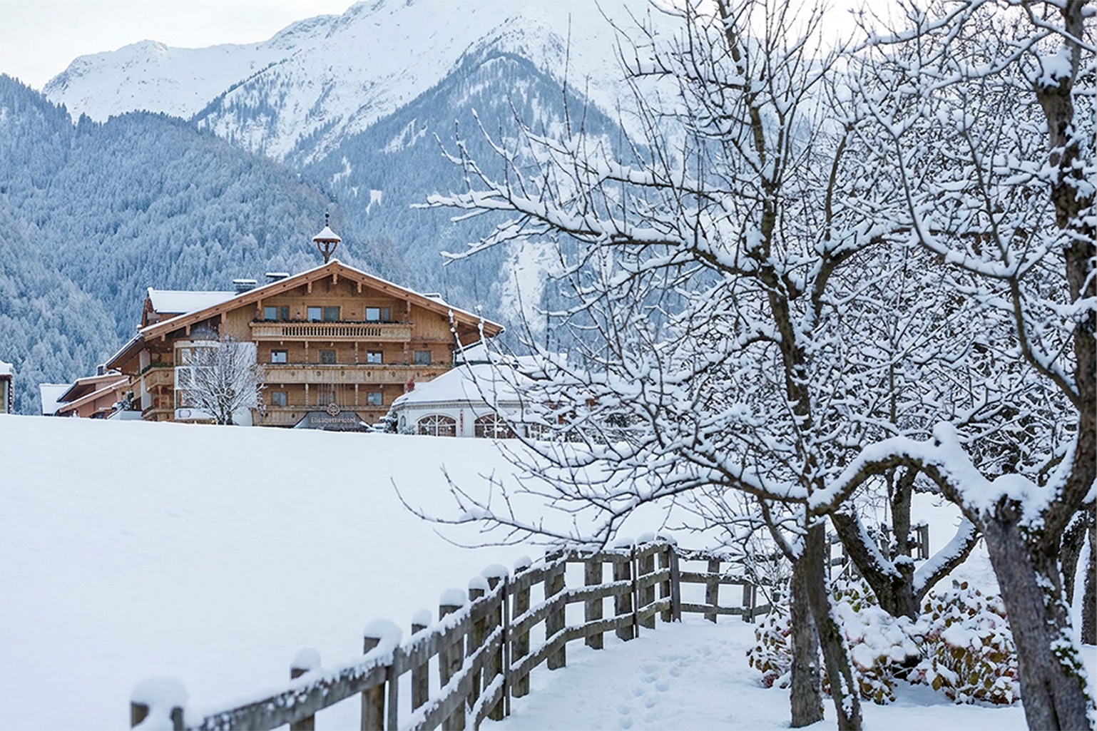 Mit Skibushaltestelle direkt vor dem Haus und bester Verbindung ins Skigebiet Mountopolis verbindet das Adults-Only-Hotel im Zillertal alpinen Aktivurlaub mit entspannenden Momenten im 1.400 m² großen Elisense Spa.